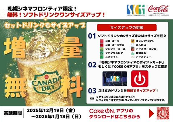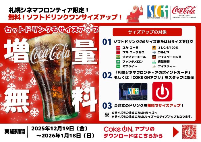 ※「札幌シネマフロンティア ポイントカード」または「Coke ONアプリ」何れかひとつのご提示につき