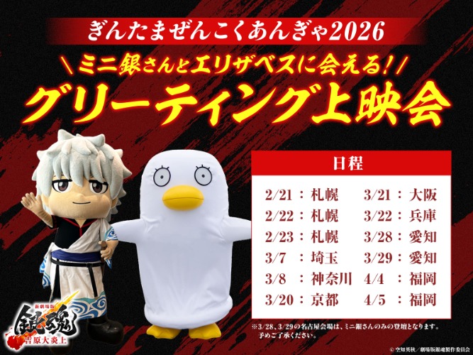 銀さんとエリザベスに会えるグリーティング付き上映会について、2月21日、22日,
